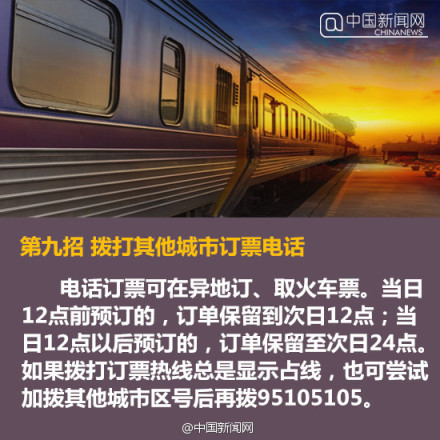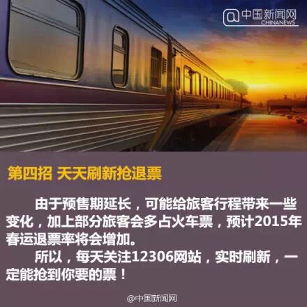 面对史上最长火车票预售期,小编揭秘八大抢票攻略!“占票”、“改签”、“临客”、“抢退票”;APP、网页、电话……各类抢票技能一应俱全。快收好!