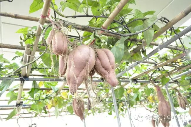 空中结红薯,如同摘瓜果。摘了继续长,四季有薯收。