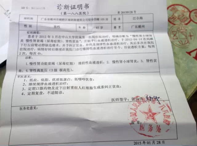 然而在2012年3月,小宜宜的父亲被查出尿毒症,两年的治疗已经花光了家里所有积蓄,在已经无力再支付医疗费的时候,祸不单行,小宜宜的母亲也被查出患上尿毒症,没有经济来源的他们,无法得到正常的透析治疗,一年多来,夫妻多次病发昏迷。家庭随时可能崩塌。