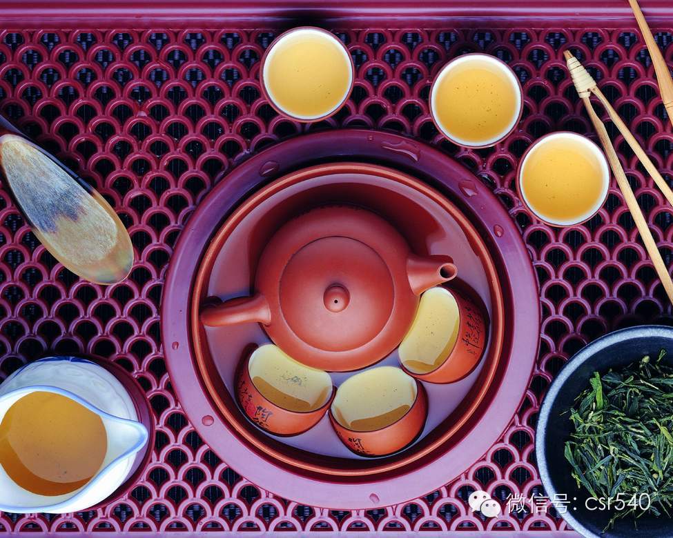 第一冲茶泡好了。“食!”(“食”在潮汕通“饮”,在这里还有“请”的意思。)一声招呼,长者为先,宾朋为次,主人最后,大家各捏起一盅,举至嘴边,口未尝,鼻先闻,再一啜,但觉喉吻留香,清韵荡肠,似乎,看见了高山云雾,又好似乎,听到了山泉潺潺,真个令人神清气爽,俗念顿消。
