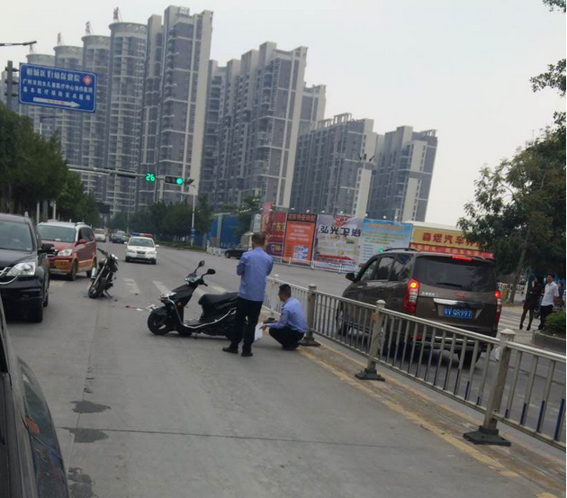 4月25号下午,在临江南路星河城前路段发生一起摩托车车祸,据说是一学生哥开了辆年纪比他还大的本田CB400,载着一个妹子,撞上了一辆迅鹰摩托,一男子伤势严重,流了一地血。被载女子也倒地不起!