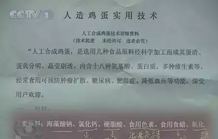 我们可以算笔账:以1公斤鸡蛋在6.5元左右为例。1公斤的海藻酸钠只需要42元钱,能制作出150公斤的假鸡蛋,加上其他费用,1公斤假鸡蛋的成本才0.55元左右。整个制作时间不到5分钟,这可比母鸡下蛋要高效率。以前就知道人造蛋神马的!今天终于自己在家里做了!乍一看这些人造鸡蛋和真的土鸡蛋外观上没有什么区别,但它们的主要成分却是化工原料。现场实验为你揭开人造鸡蛋的制作过程……