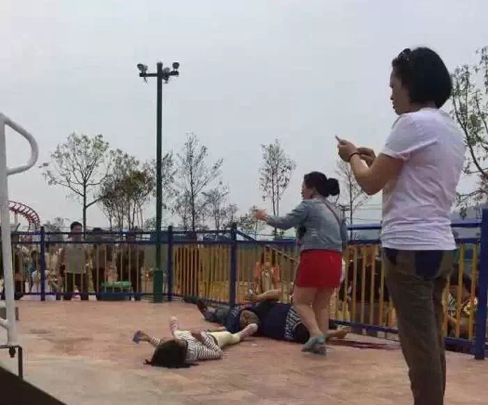 另据媒体报道,有现场目击者看到,高空中坠下3个人,另有一人有被高空坠物砸到。目击者说有游客在尚未扣好安全带的时候,游乐场机器就开动了,致多人从3米高地方掉下。