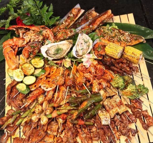 茄子。韭菜。土豆。虾。辣椒。烤的时候放蚝油还有那些烤料