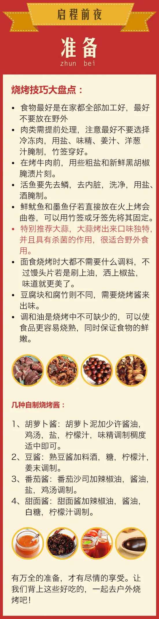 别急,今天奉上一份「史上最强户外烧烤准备清单」!来一次户外烧烤是不是听起来超赞??!想到那“滋滋”冒油、焦香扑鼻、入口即化的烤肉,小伙伴儿你怎么可能还hold得住?