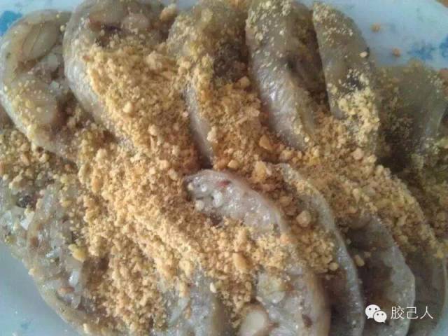 对于潮汕人来说,这不但是个进食的过程,还是个享受的过程,每个人根据自己喜好的口感,再配以特制的糖油,一盘看似豪爽简单的猪肠胀糯米,其实内在精致复杂。