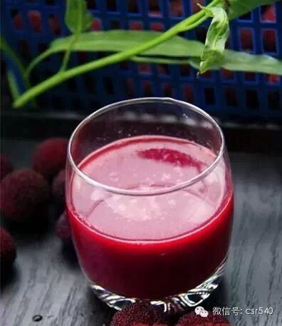 如果喜欢单纯的杨梅汁,则可以将杨梅与盐和糖一起腌制过后进行蒸煮,取出的果肉和果汁做成浓缩果汁装瓶备用,待想喝的时候在瓶内取出适量的果肉和果汁,冲水加冰即可饮用。在盛夏的午后,来上这样一杯醒神的杨梅特饮一扫工作疲劳之余,还能养颜美容。