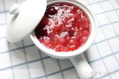 杨梅果酱两斤杨梅洗净,控水。直接放入锅中,加红糖半斤开小火一会就出了好多糖,要不停的搅拌,加一点盐,再加半个柠檬汁,慢慢的汤浓稠了,杨梅变小了,又加了一小杯红酒。一定要不停的搅拌。最后把汤收的一点也不剩。即成杨梅果酱。