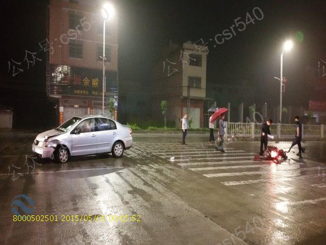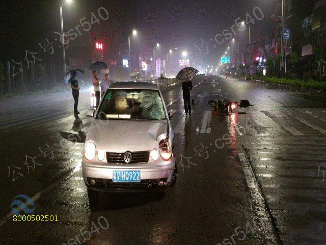 起因是小车要转进锦丰大道,因下雨天摩托车车速过快,
