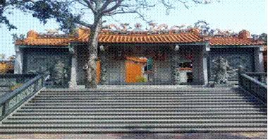 在孔庙东侧有百级台阶往三界庙。石雕二郎神、托塔李天王分立天公庙门两边,庙前有苍天木棉一株。李祖仙师庙和神农圣帝庙紧邻天公庙两侧。三界庙正门内为天公主庙,坐西向东。主庙前后两进,五间开,殿前新刻九龙壁作为照壁,前面说到二郎神和李天王足以显示这庙宇级别高,更兼这九龙壁,更是属于皇家最为尊贵的级别,当然一些寺院也有九龙壁,但是这是庙宇有九龙壁,更是其特别之处了,但我还是认为玉皇大帝的宫庙用九龙壁是有点降了档次。