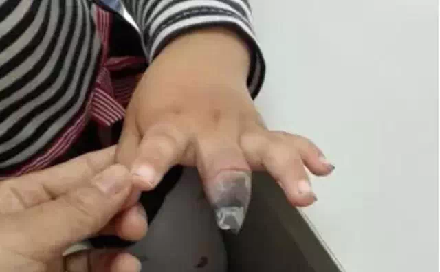 据了解,包扎后,奶奶曾询问过雯雯手指的情况如何,并要查看伤口。结果,雯雯说,手指不痛了。同时也不愿意让奶奶查看伤口情况。等到两天后,奶奶拆开雯雯手指上的布条和创可贴,这才发现雯雯的手指已经发黑、坏死。