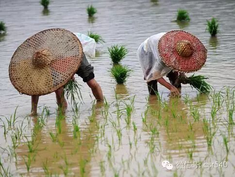 田里的泥土翻两到三遍,将秧苗从育苗田里把秧苗拔出来捆成小捆,再挑到水田边,将那一小捆一小捆的秧苗均匀地抛入水田,然后下田,解开捆着的秧苗,开始均匀的插秧。这活又繁琐又累人,真的很考验腰功啊
