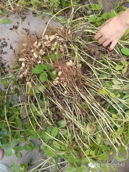 先把花生连藤一起挖起来集中,然后把花生从藤上摘下来。以前总是把花生浆弄到衣服上,洗也洗不掉。