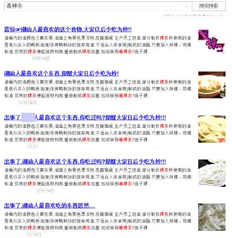 谣言止于智者,希望广大网友认清真相,不要盲目转发不清楚真相的事情,小编提醒:谣言传播数量过多、后果影响严重还有可能面临拘留的后果。虽然小编我不敢打包票说潮汕人制作的食物全是安全卫生,但是起码大部分商家都是安分守法经营,而且,潮汕人卖粿条大都是蒸完晾干手工切,这点你去市场就可以看到,更排除了文中机器切割的各种污染,这种一扫一大片的造谣贴却招摇过市得到大量转发实在让人心痛,这让人不由想起了数年前一个谣言帖导致海南蕉农血本无归的事件,做粿条的商贩都是小本经营不容易,为何要这样害他们?什么仇什么怨?究竟是谁在黑潮汕人?你愿意转发为他们平反吗?