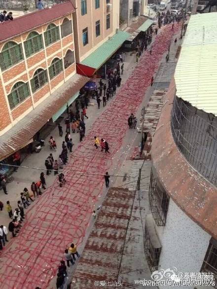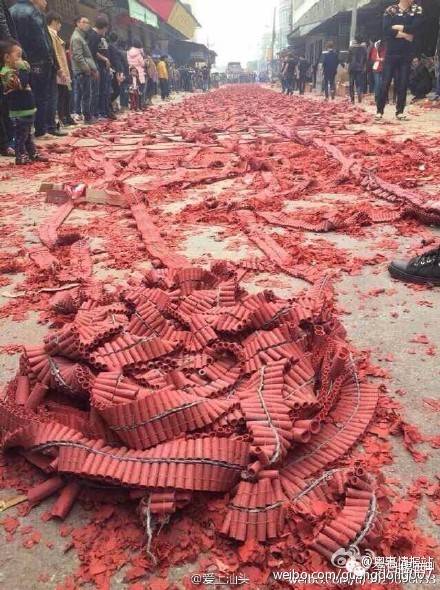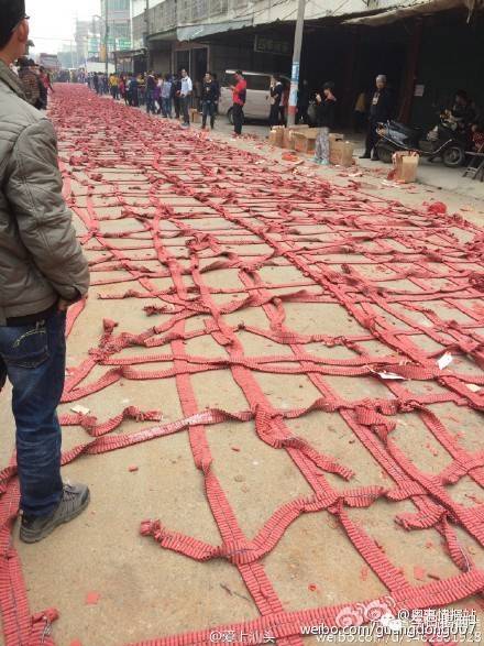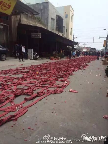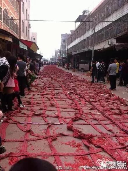 下面这个简直就是把路铺上红地毯了!惊了着死!这个打起来应该是地动山摇吧!(图为去年正月十三的澄海莲下南湾)