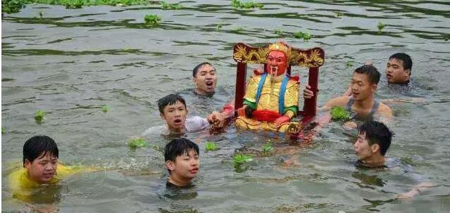 抬老爷的一帮青年也跟着跳下水去!村民们不顾寒冷,争相陪同“伯公”跳入水中,护拥“伯公”尽情翻滚转动,祈福新年平安吉祥,百业兴旺。
