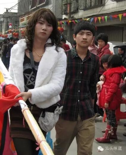 这也许是潮汕地区最奇葩的营老爷——伪娘游神!正月廿七潮南区胪岗镇胪溪乡营老爷,因为规定不能有女的出现,但是潮汕地区大多是美女抬标旗,于是在队伍中出现了这么一群穿丝袜、戴文胸、穿靴子、喉结有胸部、浓妆艳抹风情万种的伪娘,这可真是潮汕地区游神的一大奇景各种毁三观啊~
