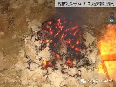 接下来,再用一些稻草,或是晒干的番薯藤、竹枝竹壳木料等烧火,直至把土块烧红烧透才熄火,就可以通过洞口往里面放食物,最后用土块封住窑门。如果烧的柴火太多,还要扒出炭灰再往里面放食物,这样才有足够的空间。