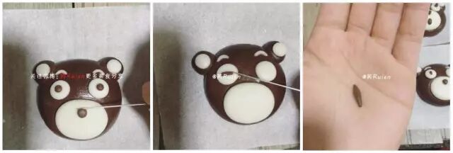 ⑦深色面粉团搓成眼睛鼻子嘴巴,完成了^_^