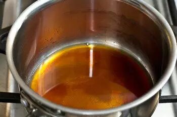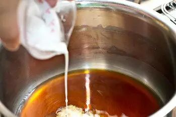 ⑦糖、酱油、味琳、水放在一起煮开,边加热边搅拌