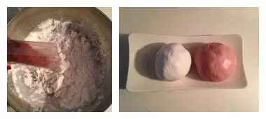 ③剩下的面粉加入草莓粉和出一个粉色面团