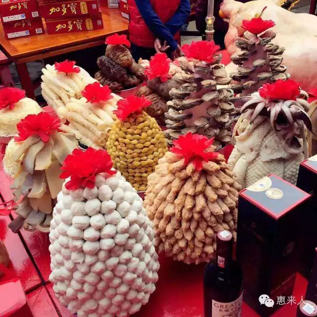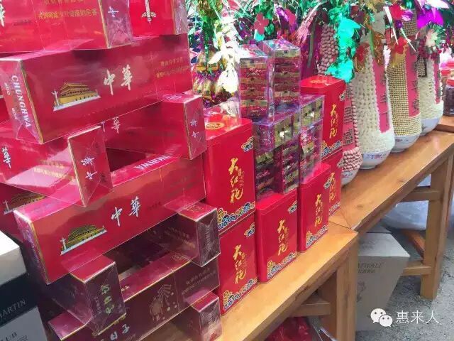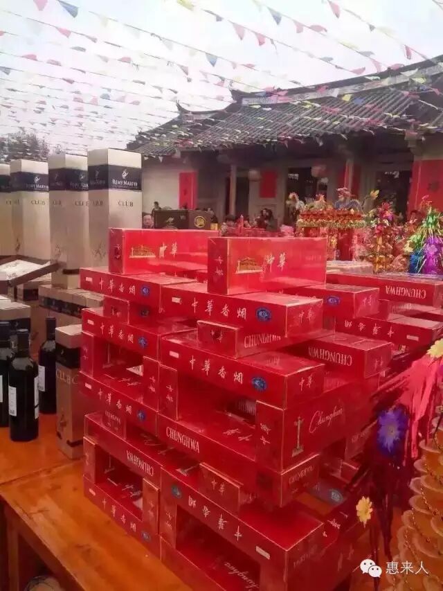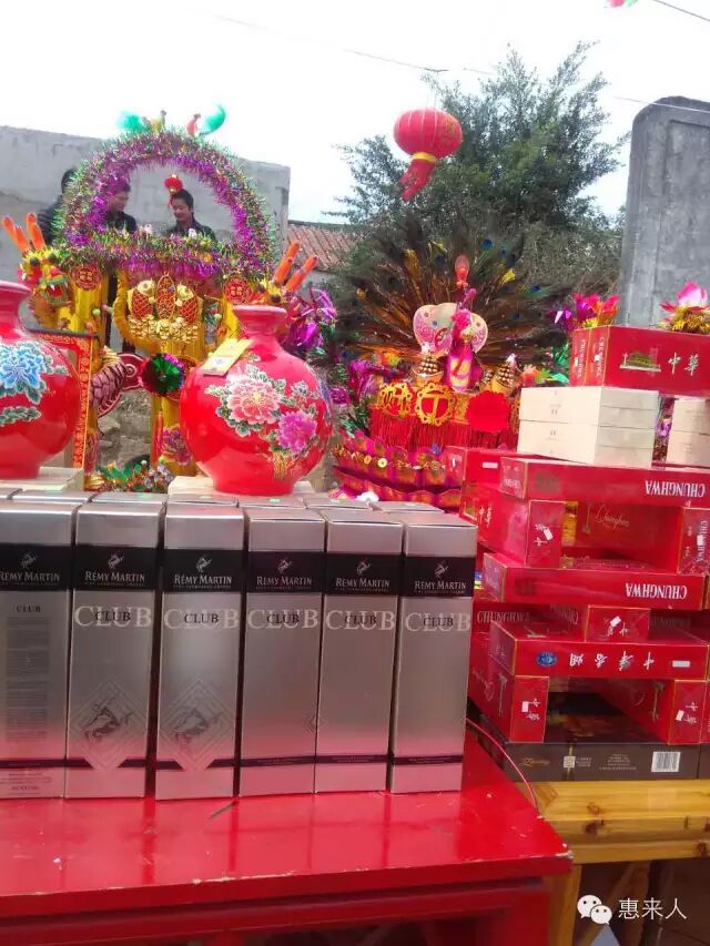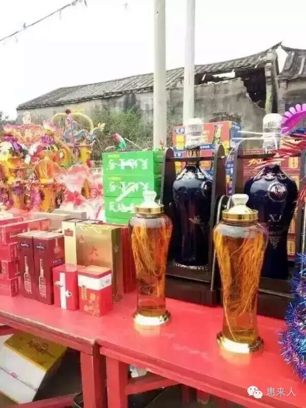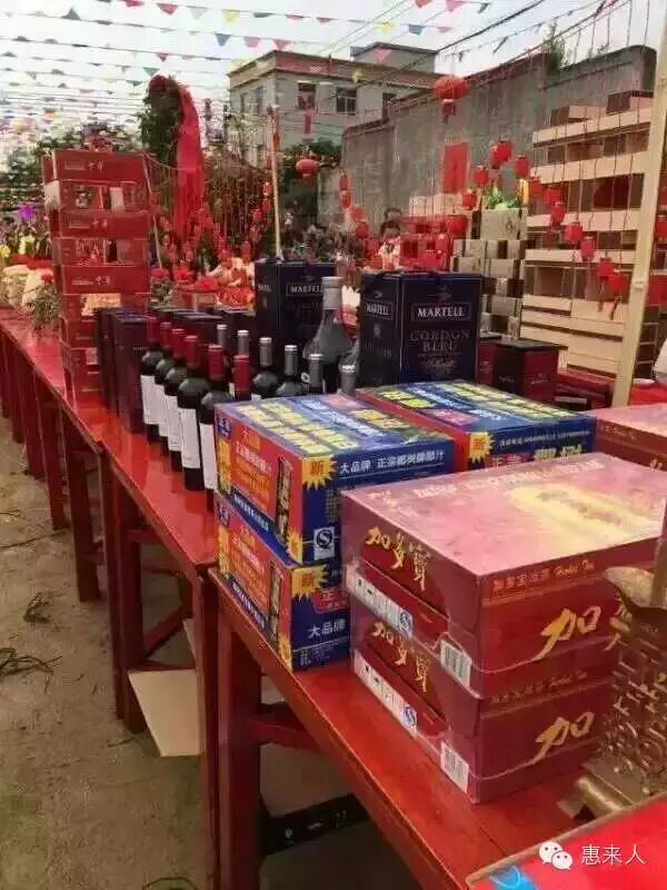 洋酒、中华、名茶、鲍鱼、龙虾、燕窝、鱼翅等等,小编想这个村如果没钱的都不敢生儿子了