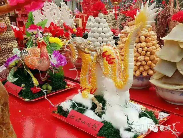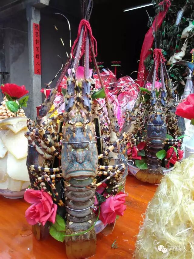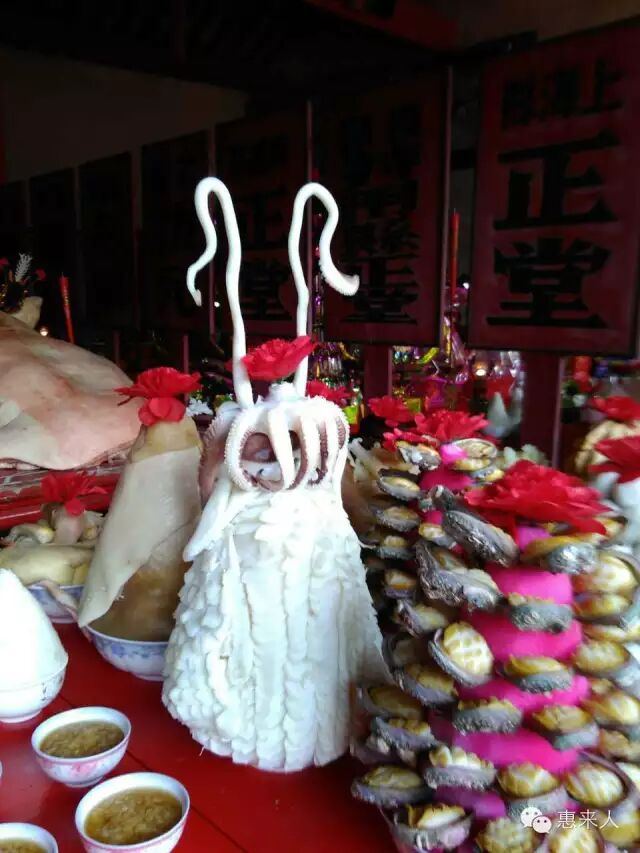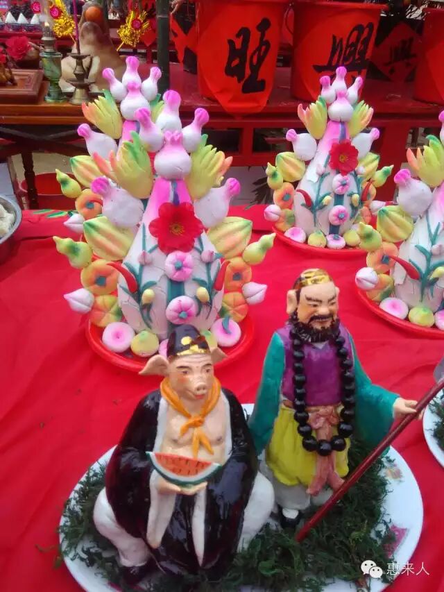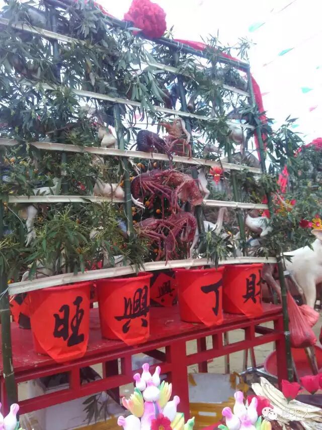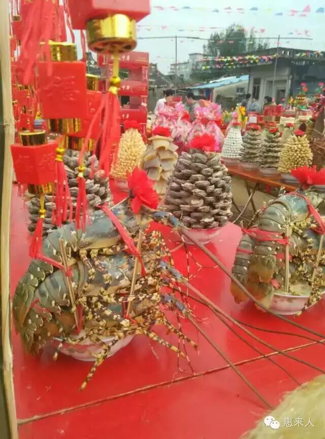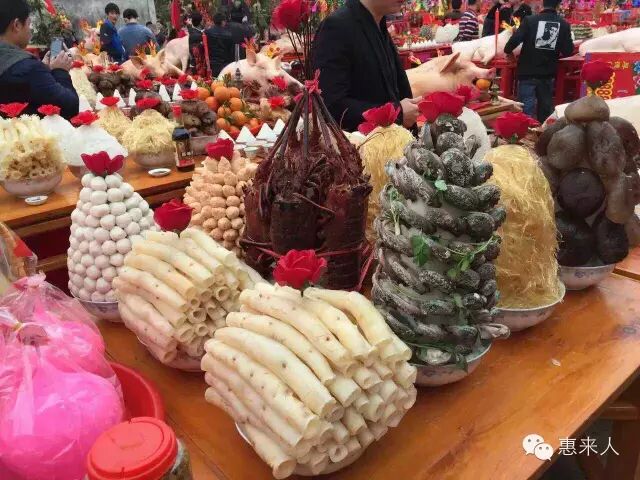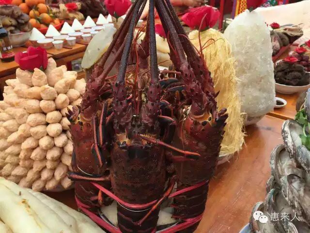 昨天(农历正月十三)惠来隆江镇孔美村一年一度上灯,村里生男孩子的正月十三和十四这两天要请吃海鲜大餐,鲍鱼、龙虾、燕窝、鱼翅...小编看着都流口水。现场唐僧师徒四人也出现了,是全村唯一的一个,全村只有一个,是订做的,据说费用是上千元,用面做的。