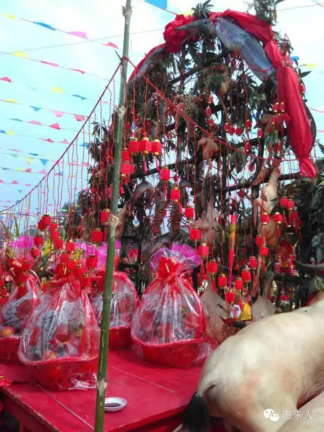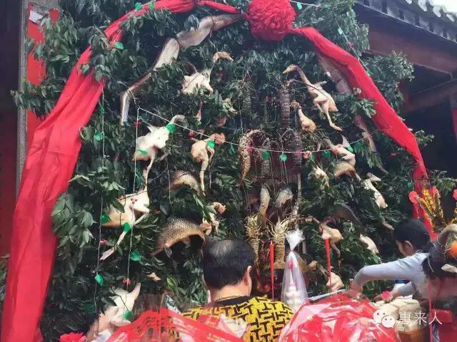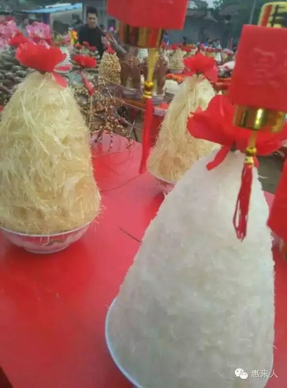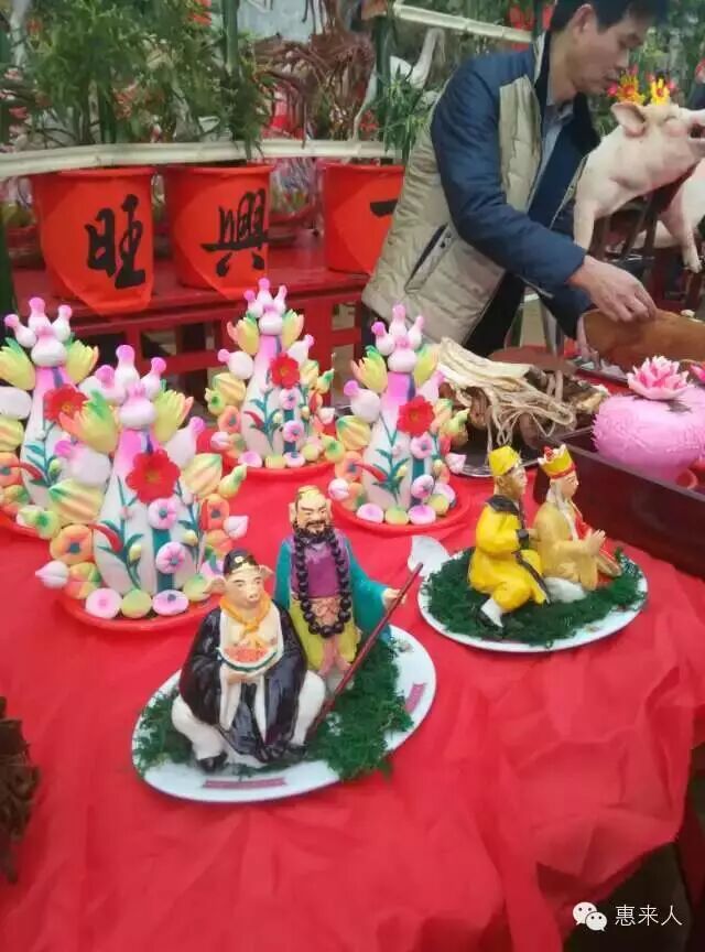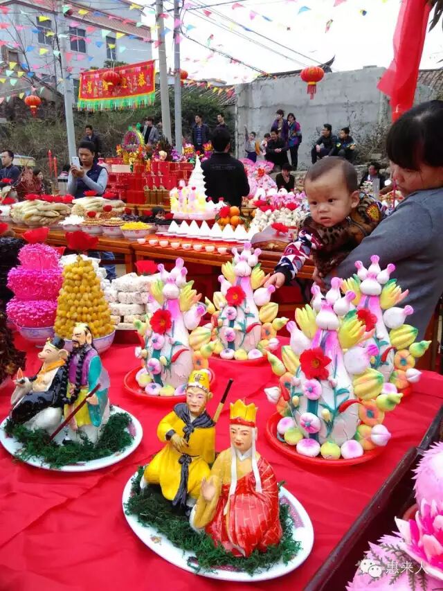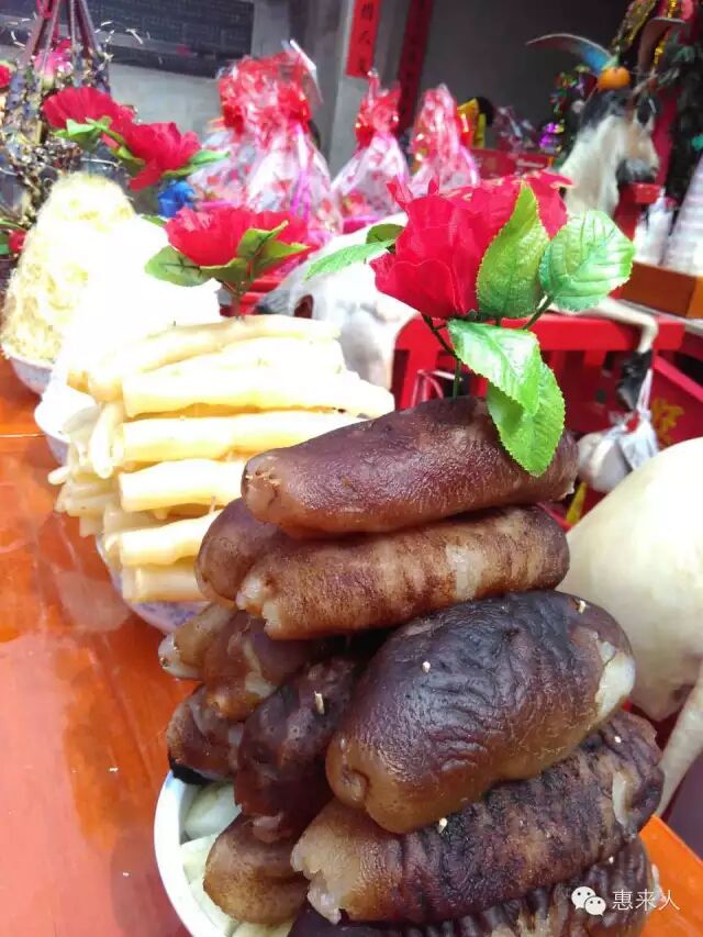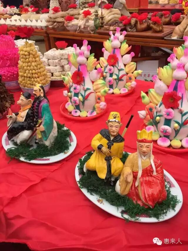 昨天(农历正月十三)惠来隆江镇孔美村一年一度上灯,村里生男孩子的正月十三和十四这两天要请吃海鲜大餐,鲍鱼、龙虾、燕窝、鱼翅...小编看着都流口水。现场唐僧师徒四人也出现了,是全村唯一的一个,全村只有一个,是订做的,据说费用是上千元,用面做的。
