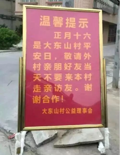 正月十六“忌平安”是一个古老的潮汕民俗,在正月十六这一天,全村防范森严,不准外村人进入,怕外村人带入邪煞之气。