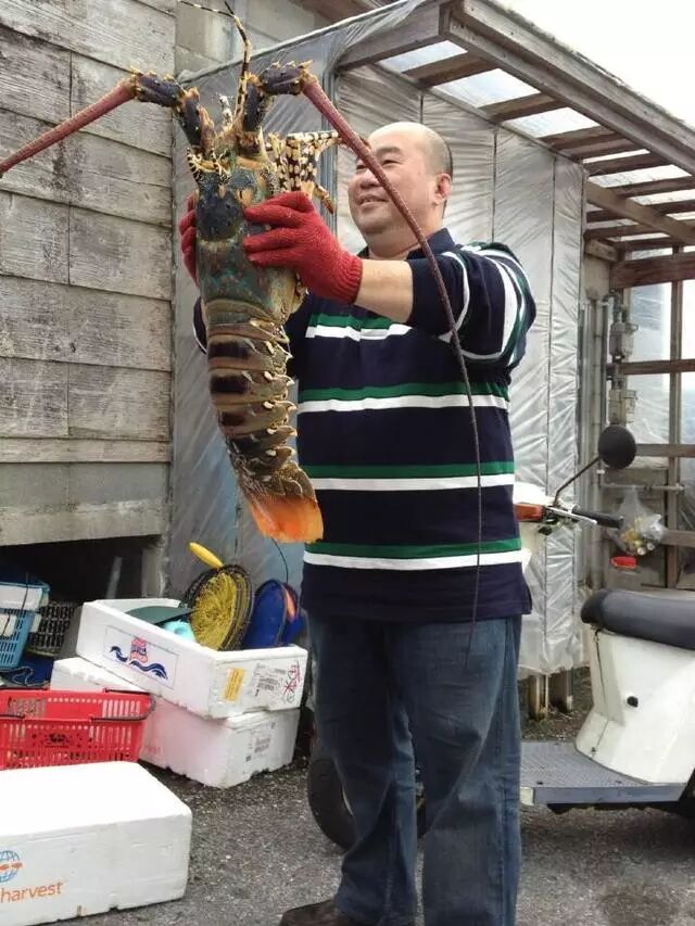 新加坡发记潮州酒楼李长豪拿着10多斤重的大龙虾