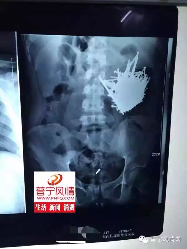 为何男子会吞下这些锐物呢?据知情网友透露称,该男子患有严重的压抑症,一直不说话也不爱吃饭,所以他才有这种异常的行为并且难以被家人察觉。
