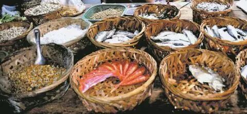 ▲一个个小竹篮里整整齐齐地叠放着各式各样的“鱼饭”