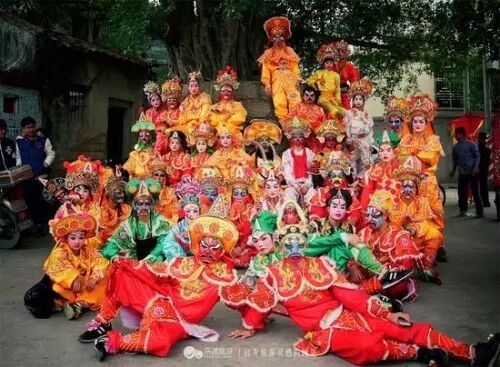 “英歌”已超过 400年历史,是潮汕人礼敬神佛的另外一种形式,也是数百年前潮商宴请时用以助兴的手段。“英歌”最初是根据梁山泊英雄攻打大名府的故事创编的,即便是入宅表演,人数也不会少于 18人,很多节奏与杂技动作带有侵略性,带着凛冽威严、镇邪僻恶的气势,李逵、鲁智深等角色,化妆时讲究“夸张、狰狞”,演员们化完妆会问别人:够不够“野”?