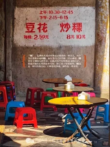 一家著名猪脚饭店的老板说,他家店铺是从小摊儿开始做到如今的大店,20多年来,每天他都亲自到市场买菜,上午一次,下午一次,风雨无阻,像为自己家人挑选食材一样用心。潮汕大小夜糜铺的摊主也是如此,因为知道食材新鲜干净,主人会用心料理,所以潮汕人在夜糜摊上从不挑三拣四,选好食材,下巴一指,手一比划,待摊主心领神会地一点头,便呼朋唤友自顾自地往里走,像出入自家厨房般自在。