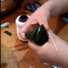 2.叶子正反相贴毛面相对,折成漏斗状。