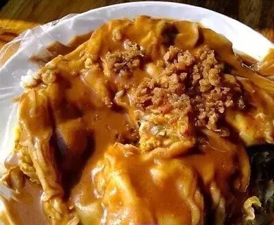 特点:潮州肠粉应该是潮汕肠粉里最具辨识度的肠粉了,上面淋上粘稠的花生酱和芝麻酱,香飘四溢~粉皮厚和韧,当然里面的料除了蛋和肉之外,可能有时候会加白菜或者包菜!
