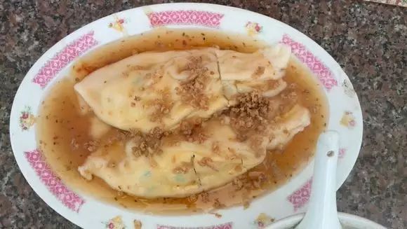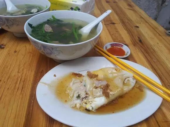 这像汤一样的酱料,不要怀疑,这真的是肠粉。跟广式肠粉不同的是,粉皮比较厚,口感比较劲道!