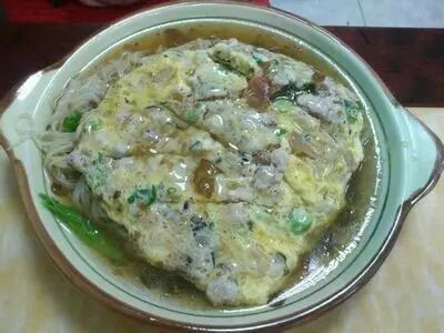 特点:潮汕的大部分肠粉铺在盘子上都是卷曲的,而饶平的肠粉却是直的铺的,而且最有特色的是他们有甜和咸两种酱料,甜味的肠粉确实是潮汕肠粉里一种奇特的体验!在卖肠粉的地方,也卖汤,点上一份肠粉,点上一份汤。早餐也就这样过去了!