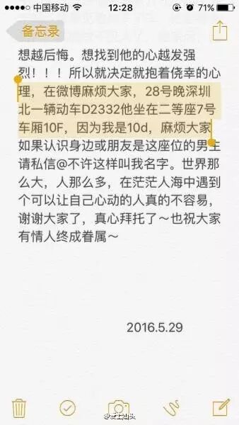 这位女网友还称“世界那么多人,唯独遇到一个可以让我那么心动的人真的很不容易”,希望能借网友之力寻找男子,希望能促成一段好佳缘~