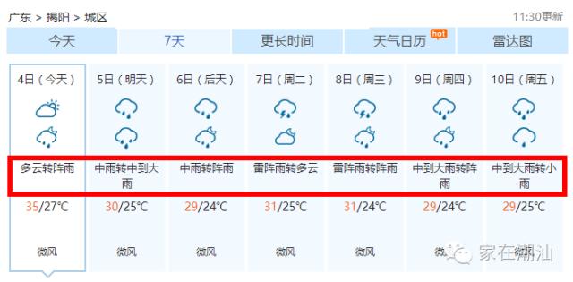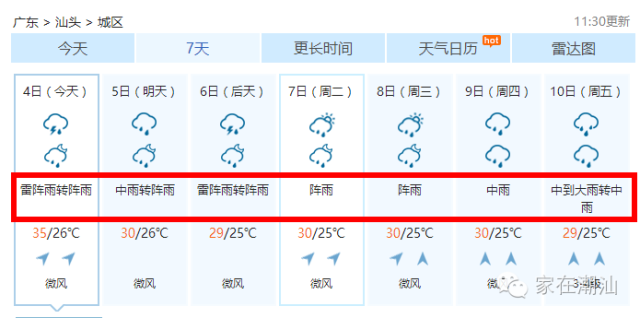 潮汕天气是:雨雨雨雨雨雨雨