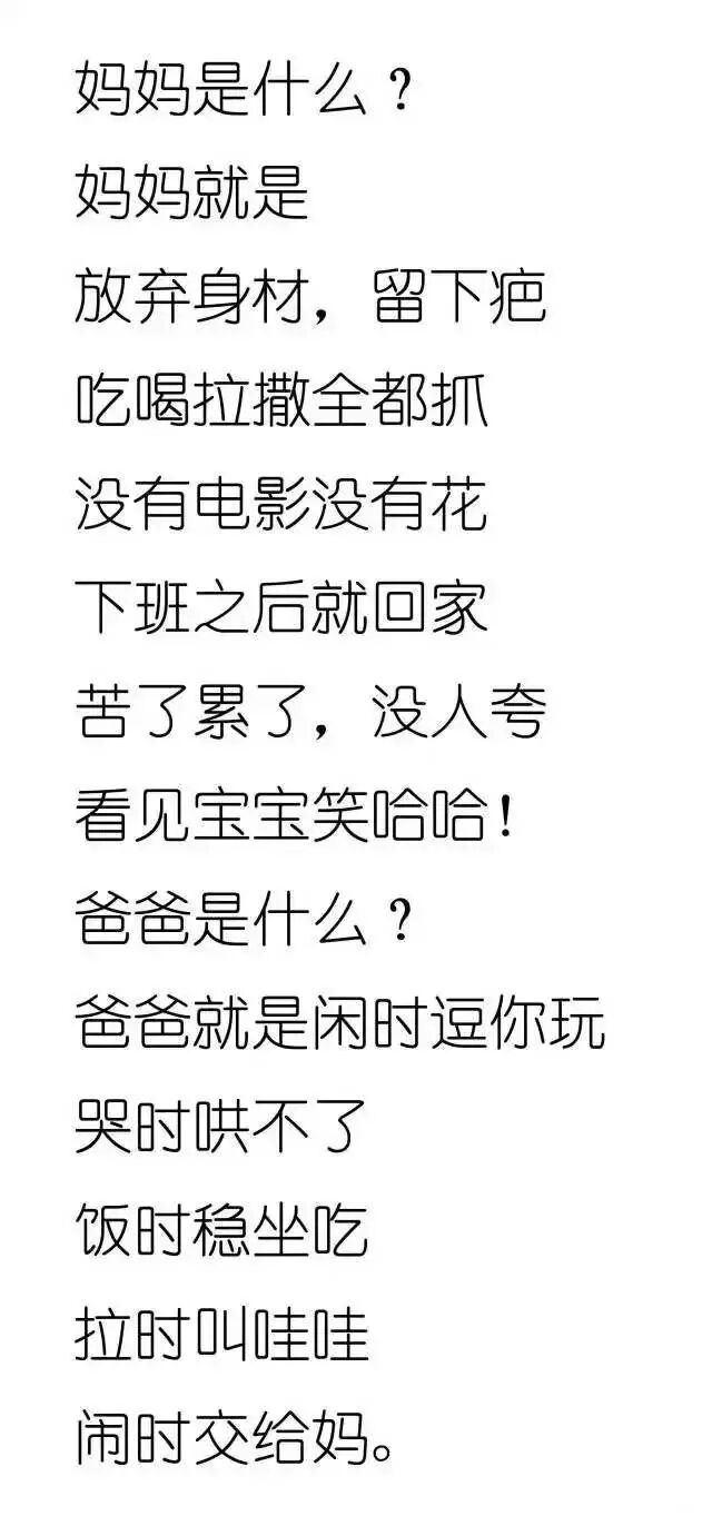 不管是温柔的妈妈还是“坑爹”的爸爸,他们都是对孩子深深的爱。只不过表达的方式不同,母爱如水、父母如山!