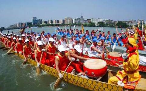 潮汕有韩江、榕江、练江三条主要河流,支流河溪交错,水流平缓,是赛龙舟的黄金水域。端午节期间潮汕人赛的龙舟一般有三种,一种是大型龙舟,长20—30米,宽1.4—1.6米,设20—30对桨,周身彩绘鱼龙图案。另外两种是彩头船(饶平、南澳一带)和龙船仔。