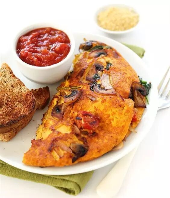 等稍微凝固一些以后加入你要的东西(比如黄瓜、芝士片、火腿等)看鸡蛋差不多了盖上切下来的包,反过来再烘烤一下,浇上番茄酱切开即可。