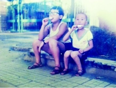 当初和小伙伴坐在家门口的台阶上