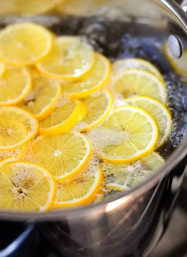 2、把柠檬片放入沸水中煮。