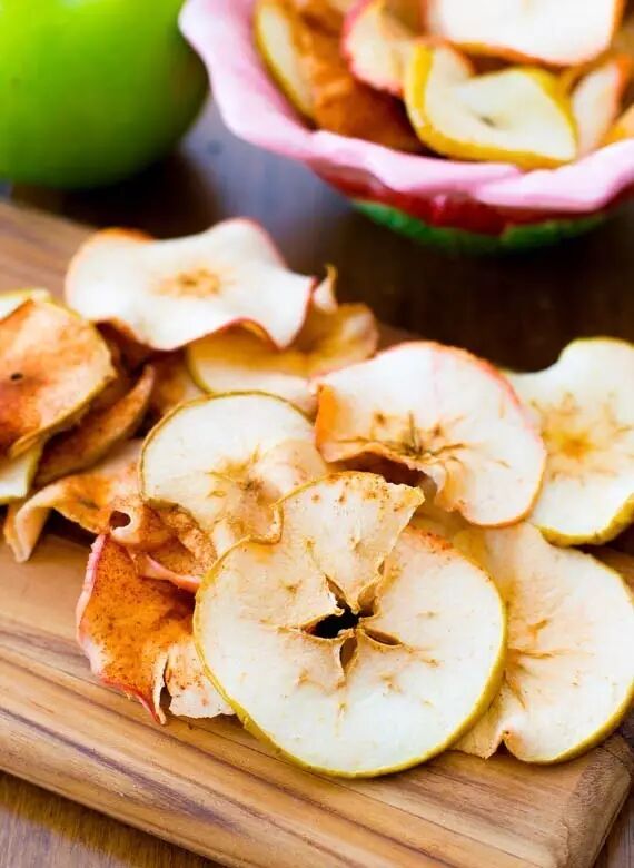 3、将苹果片拿出,翻转,再烘烤1个半小时后关闭烤箱,将苹果片依然放在烤箱内冷却1个小时。