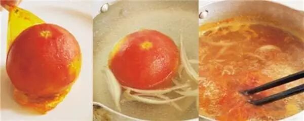 不过这种番茄冰冻法对于快速剥皮可是很有效的,不少厨师、婆婆妈妈准备用来炖煮番茄的汤头、或是番茄酱前,会先把番茄放置在冷冻库里面冰着, 等要料理前直接拿出来冲冷水,就可以快速剥皮,而且被冰透的番茄果肉一入热烫的高汤里更是一煮就化开入味。