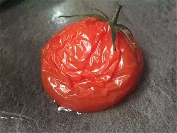 好奇心泛滥的,网友为了观察番茄的退冰情况,决定每隔三十分左右拍张照记录,想不到这颗硬得像石头的番茄竟随着时间慢慢变得干瘪下去...