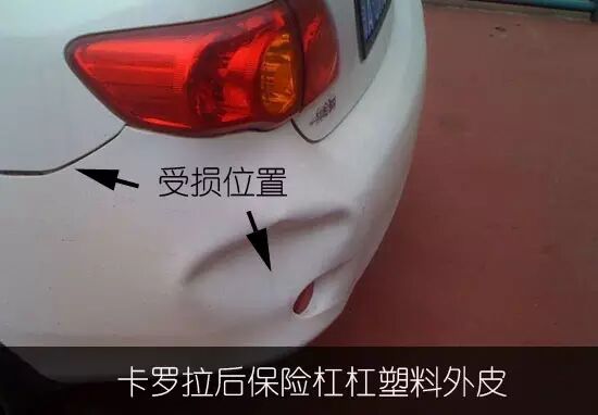 图片中卡罗拉保险杠塑料外皮与叶子板连接处,保险杠塑料外皮卡扣已脱离,塑料外皮与叶子板之间已断开连接。由此推断其撞击力也并非很大,类似上文中卡罗拉后杠塑料外皮的撞击损坏程度。还有一点,前保险杠塑料外皮一般在这个拐角位置都会设计的比较圆滑,就是为了防止“酥脆”式的碎裂,所以这样的撞击效果很可能是车主被坑,被换成“黑心”保险杠塑料外皮了。