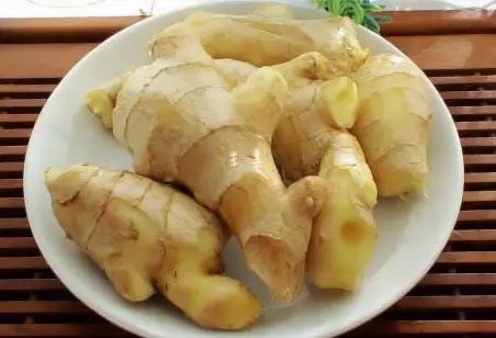 生姜甘辛而温,具有散寒发汗、温胃止吐、杀菌镇痛、抗炎之功效,还能舒张毛细血管,增强血液循环,兴奋肠胃,帮助消化。鲜姜可用于“风寒邪热、伤寒头痛、鼻塞、咳逆止气、止呕、祛痰下气”。